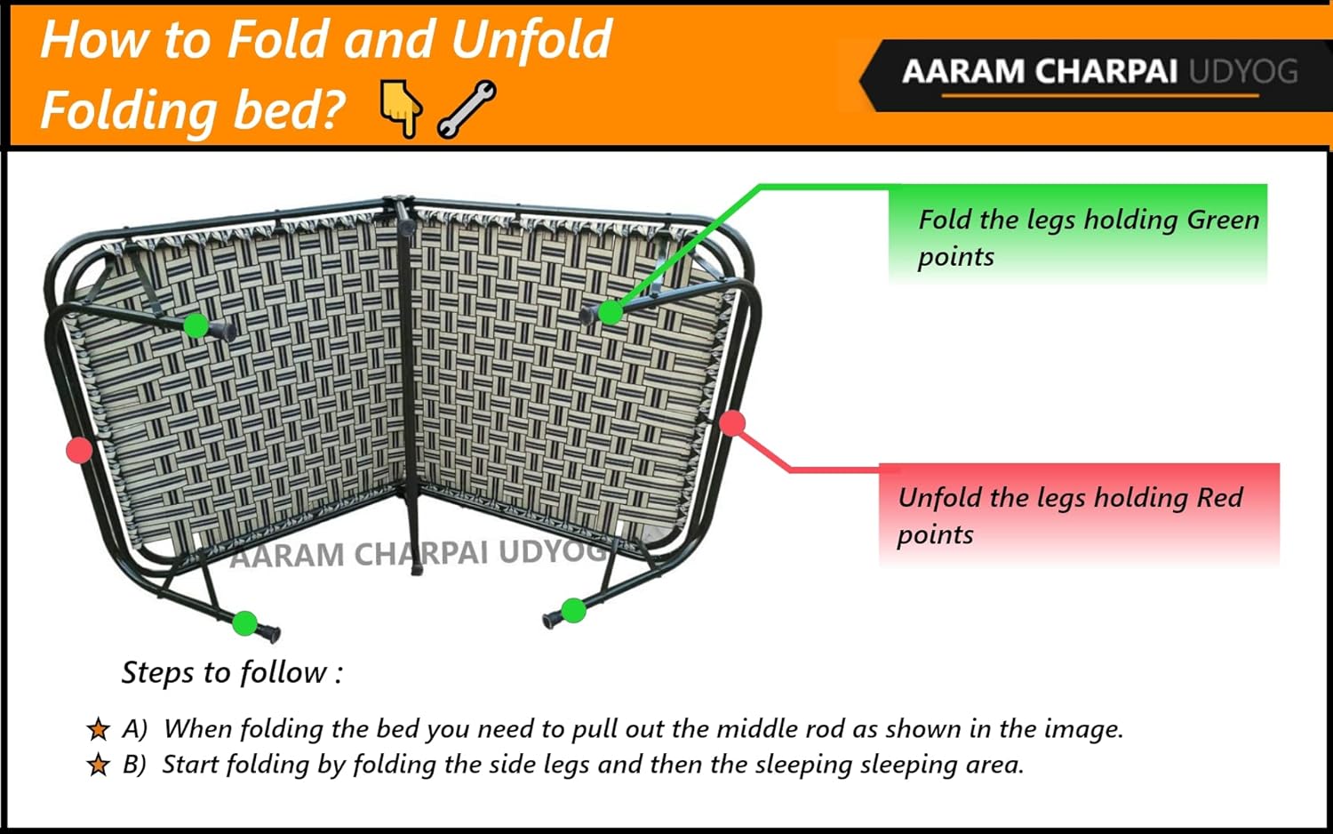 Manufactured by AARAM CHARPAI UDYOG, this folding bed reflects reliable Indian craftsmanship built for everyday Indian living conditions.